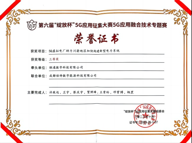 倍特?cái)?shù)能榮獲第六屆“綻放杯”5G應(yīng)用征集大賽三等獎