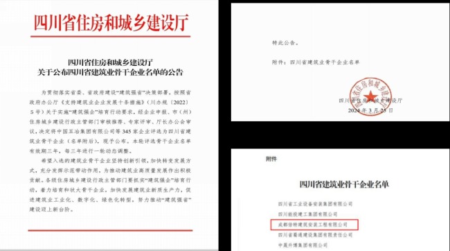 倍特建安榮獲“四川省建筑業(yè)先進(jìn)企業(yè)”等多項(xiàng)榮譽(yù)